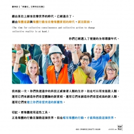 藉由某位上師來改變世界的時代,已經過去了。藉由集體意識與集體行動來改變集體實相的時代,就在眼前。(The time for collective consciousness and collective action to change collective reality is at hand...