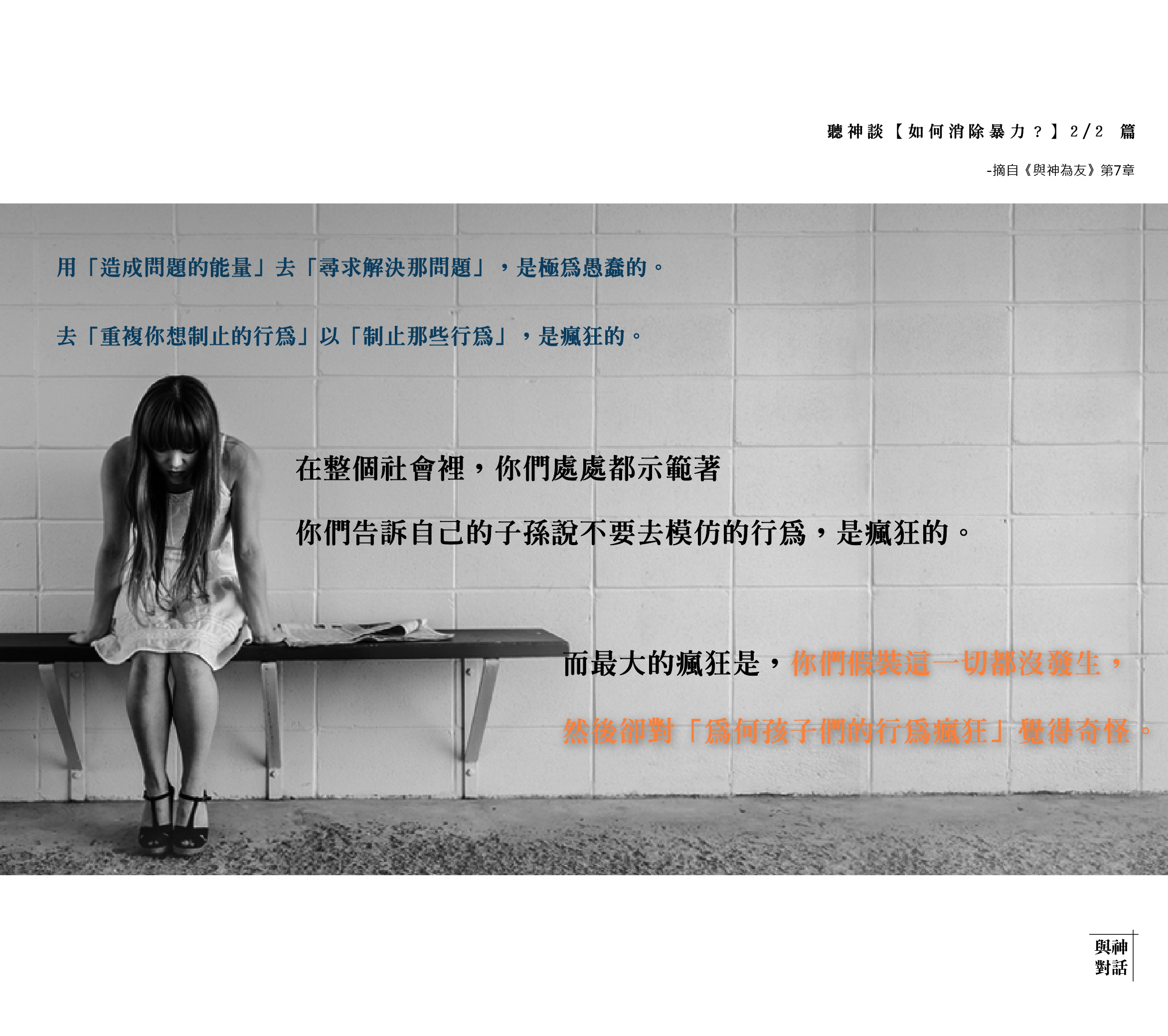 尼爾:我們不知如何解決社會暴力問題?如何教導孩子不使用暴力解決問題? 你們知道如何解決它的,你們只是還沒累積到足夠的意志力去做罷了。首先...