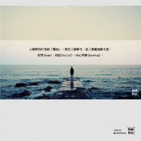 人類對每件事的「覺知」,都有三個層次。這三個覺知層次是:希望(hope)、相信(belief)、內心明瞭(knowing)。當你對某事有個「希望」時,你期望它是真的,或它將會發生。就這個字的各種意義上,你是不確定的(not certain...