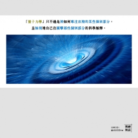 「量子力學」只不過是神如何專注在祂的某些個別部分,並檢視祂自己在衝擊那些個別部分的科學解釋。 以靈性的說法,你可稱這現象為一個「更高層次的意識」,或「擴增的自我覺知」。它是當那個覺知(That Which Is Aware)體驗到「它會影響那些有自我覺知的東西」的事實。尼爾:「...