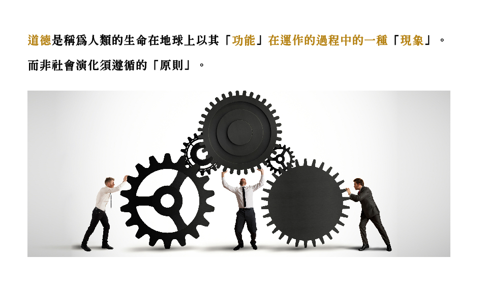 「道德」對演化初期的社會確實有不小的功能,但它只是社會演化過程中的一個現象的一種表達、一個工具,而非演化的本質或需遵循的原則。覺知這個道理——正如覺知人類的十大幻覺——我們才更能跨越它、善用它,而非受限於它、誤用它。