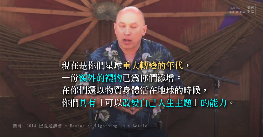影片摘自:2014-Bashar at Lightning in a Bottle