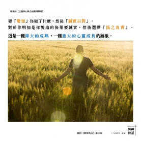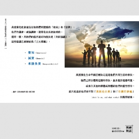 現在我要給你們三樣工具,用它,你可以確定你的人生會有益地度過。這些是「全人生活」的核心觀念(Core Concepts of Wholistic Living):·覺知(Awareness) ·誠實(Honesty) 承擔負責(Responsibility,即:覺之後願意誠實面對,...