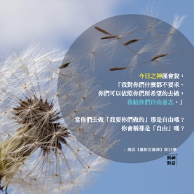 今日之神僅會說:「我對你們什麼都不要求。你們可以依照你們所希望的去做,我給你們自由意志。」今日之神不會說:「你們有自由意志,除非,你不順從我要求的去做,在那情況我將永遠懲罰你...