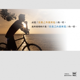 我是沒有需求的。表達「在我之外我所是」的一切,我所需要的只是「在我之內我所是」的一切。(All that I am within My Self is all that I require in order to express all that I am outside of My Self.)...