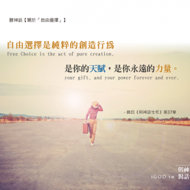 自由選擇是純粹的創造行為,是你的天賦,是你永遠的力量。Free Choice is the act of pure creation, your gift, and your power forever and ever...