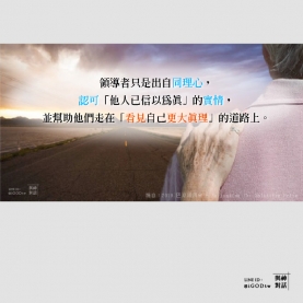 領導意味著做自己、有自信地做更高版本的自己、知道自己的熱忱、意識到什麼是需要做的事情,並在言行上成為其他人「如何以非常輕鬆、