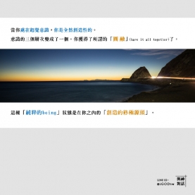 你並非由骨頭、肌肉及內臟器官所組成的聚合物,這並非真正的你。你的身體屬於你,但卻不是你。身體是某種你們正在使用的東西。 它是一個工具,一種裝置。它是一種運作和反應的機制。這個運作的工具可能會受傷、損傷或毀壞,但「你」不會。這個工具可能變得完全無法運作,但你不會...