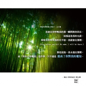 我會在你呼喚我的那一瞬間與你同在。因為這是我的允諾:即使在你呼求我的名字前,我就會在那裡(Even before you call My name, I will be there.)。那是因為,我永遠在那裡,而「你決定呼喚我」這件事,只不過是提高了你對我的覺知...