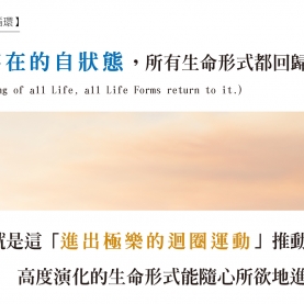 當生命形式變得更有自我覺知時,它們開始通達不同的意識層面,包括他們自己從中浮出的超覺意識層面,以及融入一切(the All)裡,融入一個有些東方神秘者所稱的極樂 (bliss)或涅槃(Nirvana) 的經驗裡...