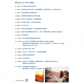 第一個憶起 :死亡是你為你自己所做的事。 Dying is something you do for you. 第二個憶起:你是你自己的死亡的因。這永遠都是真的,無論你在何處、以何種方式死去...