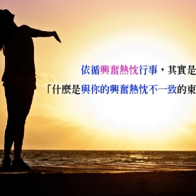 「跟隨自己的興奮熱忱(Excitement)行事」不僅可以深入找出自己的核心信念,更是加速自己成長和進化的驅動引擎,也是「讓自己生活井然有序」的最佳依循原理。事實上,它是一條生活中阻力最少的途徑。因為它會讓你連結到你生活中其他的興奮熱忱......