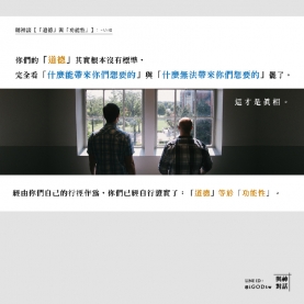 正是你們那「自以爲是的公平正義」在摧毀你們。(It is your righteousness that is killing you.)你們將許多「 功能」的差錯敗壞都貼上標籤,歸咎於「 道德」的腐敗。這種行爲產生了道德批判,而批判又引發正當性的辯護。批判某人或某國的行爲是否合乎道德,...