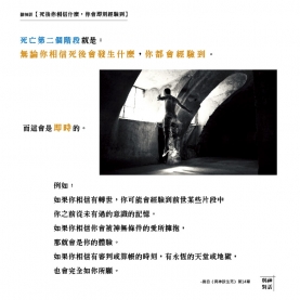 死亡第二個階段就是:無論你相信死後會發生什麼,你都會經驗到。而這會是即時的。例如:如果你相信有轉世,你可能會經驗到前世某些片段中你之前從未有過的意識的記憶...