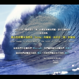 長久以來人類都想在「做」的層面來解決問題,卻不怎麼成功。這是因為真正的改變永遠都在「Being」的層面,而非在「做」的層面。Human beings have been trying to solve problems at the "doingness" level for a long...