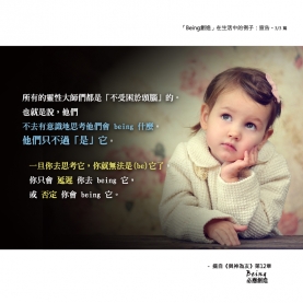 所有的靈性大師們都是「不受困於頭腦」的。也就是說,他們不去有意識的思考他們會 being 什麼。他們只不過「是」它。也就是說,他們不去有意識的思考他們會 being 什麼。他們只不過「是」它。一旦你去思考它,你就無法是 (be) 它了。你只會延遲你去 being它,或否定你會 being 它...