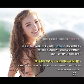 Q:神阿!我如何找到一個與我分享 人生的伴侶?不是去找尋某個人來愛,而是去成為(be)那可被愛的人。送出你所希望收到的。成為你希望去體驗的。這是一切生命中最偉大的秘密。去「成為(be)」那你在找的,而你在找的會找到你...