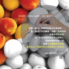 當你「給出」你認為你缺乏的東西時——愛、慈悲、伴侶關係、金錢、任何東西——你會突然體驗到,你一向都有這些東西可以給別人。這將改變所有的一切。這將完全翻轉你的思維,讓你看見「你擁有你以為你缺乏」的東西...