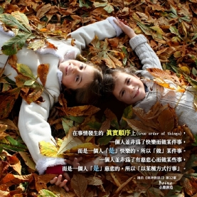 Being 是即刻的。它是突然的。甚至在你想都沒想的時候,你可能掉入愛河了!感激(gratitude)也是一樣的。當你覺得感激時,並不需要有人告訴你,是「該覺得感激的時候了...