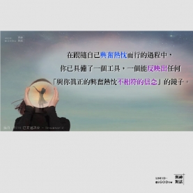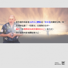 生命跟你生活中「在做的事情」沒什麼關係,而跟「當你在做它時你所being的狀態」有很大的關係。(Life has very little to do with what you are doing and very much to do with what you are being while...