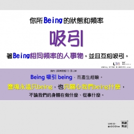 人類的「思維、言語、行為」不論就個人或群體,都是來自:當事者對於某事物所being(處)的認知、觀念、信念和定義,以及在每個當下當事者所being的狀態——即當事者在不同情境下所being的不同狀態。這「being狀態」同時也散發和吸引著相似頻率的能量,無時無刻在散發和相互吸引,直到當事者改變了他...