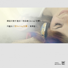 生命跟你生活中「在做的事情」沒什麼關係,而跟「當你在做它時你所being的狀態」有很大的關係。(Life has very little to do with what you are doing and very much to do with what you are being while...