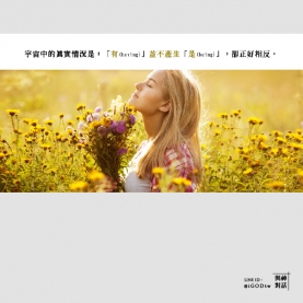 Being(是)是一種靈魂與心智的表達,(Beingness is an expression of the soul and the mind.)Doing(做)則是一種身體的表達。(Doingness is an expression of the body...