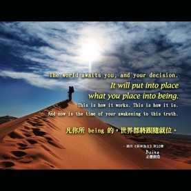 The world awaits you, and your decision.It will put into place what you place into being.You will place into being what you are being.This is how it...